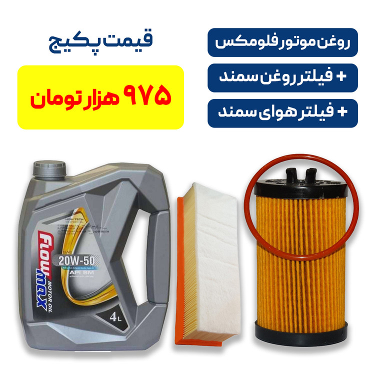 پکیج سمند - شامل روغن موتور فلومکس به همراه یک فیلتر روغن سمند و یک فیلتر هوای سمند