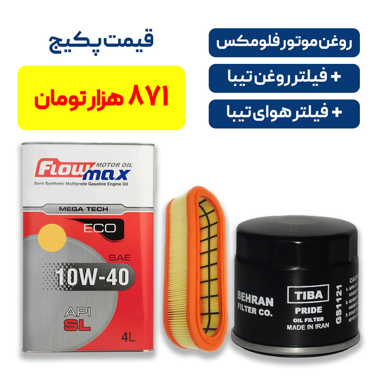 پکیج تیبا - شامل روغن موتور فلومکس به همراه یک فیلتر روغن تیبا و یک فیلتر هوای تیبا