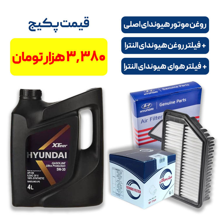 پکیج هیوندای النترا - شامل روغن موتور هیوندای اصلی به همراه یک فیلتر روغن هیوندای النترا و یک فیلتر هوای هیوندای النترا